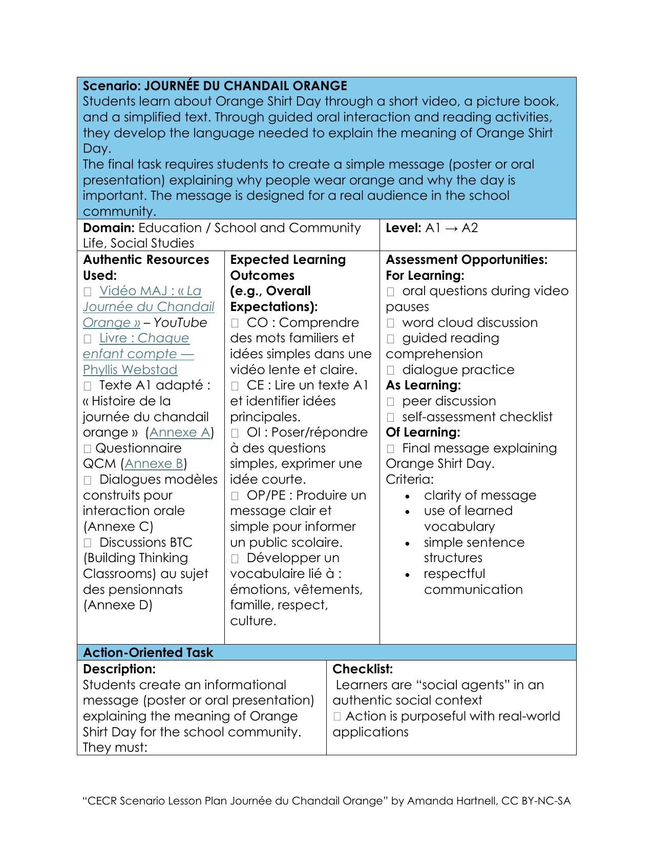 This CEFR cycle presents an authentic action-oriented task that allows students to understand and explain the meaning of Orange Shirt Day in a real school context.