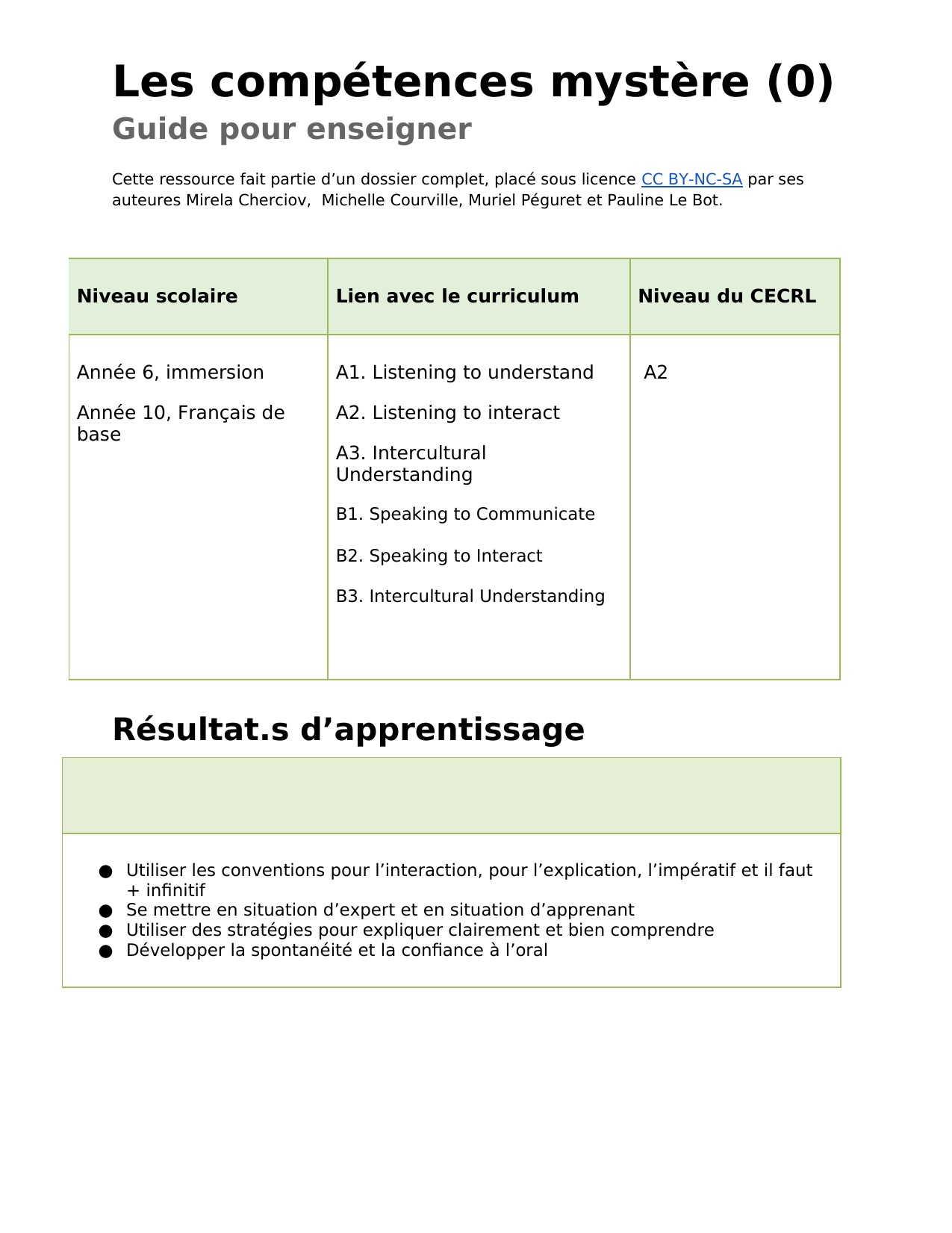 Activité (et idée de prolongement en scénario actionnel) où les élèves, en paires puis devant la classe, expliquent une « compétence mystère ». Si l'enseignant décide de prolonger par un scénario actionnel, les élèves peuvent être mené jusqu'au développement de leur propre mini-atelier. L’accent est mis sur la communication orale, l’interaction, l’utilisation de l’impératif et de « il faut + infinitif », ainsi que sur des stratégies d’explication et l’auto-évaluation.