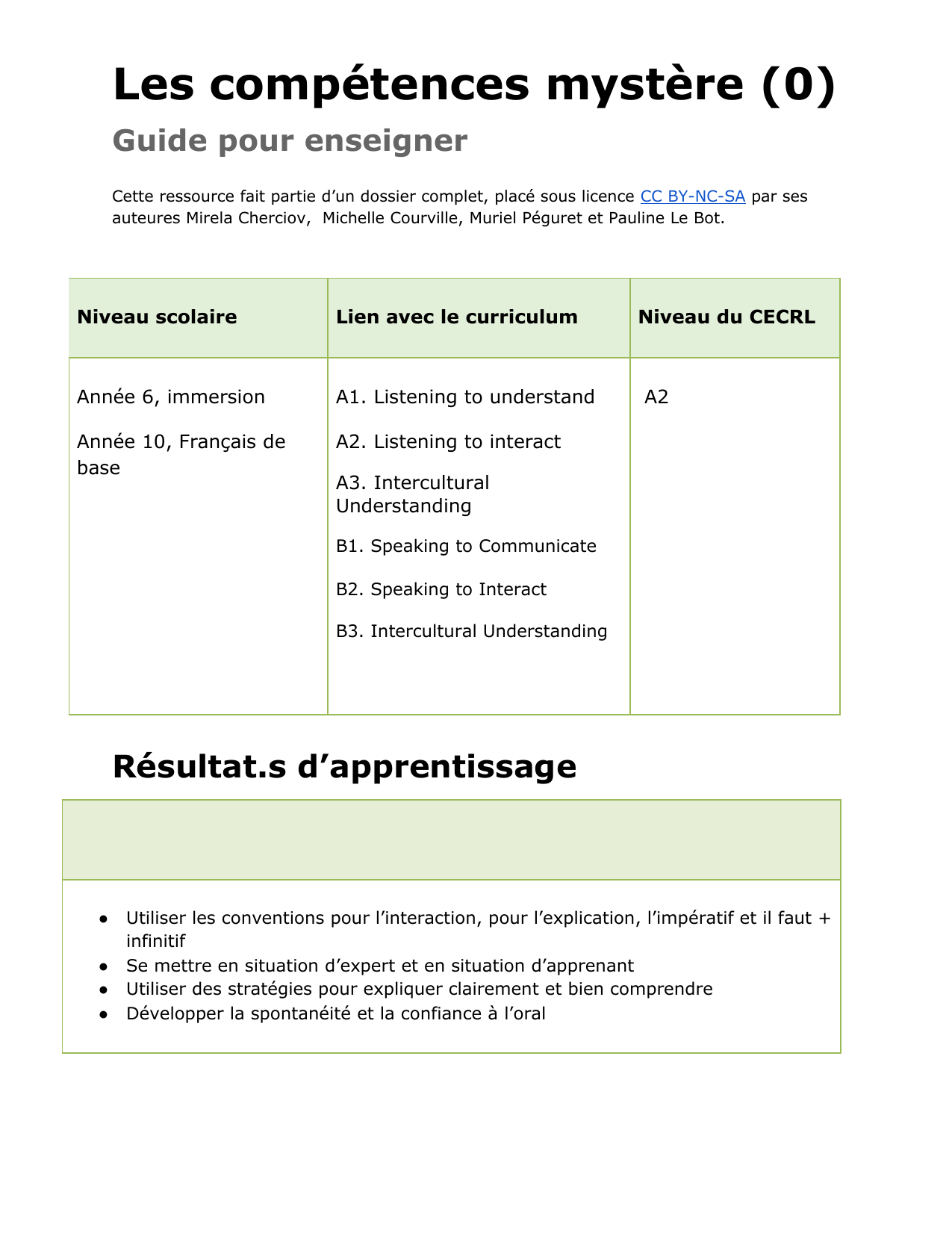 Activité (et idée de prolongement en scénario actionnel) où les élèves, en paires puis devant la classe, expliquent une « compétence mystère ». Si l'enseignant décide de prolonger par un scénario actionnel, les élèves peuvent être mené jusqu'au développement de leur propre mini-atelier. L’accent est mis sur la communication orale, l’interaction, l’utilisation de l’impératif et de « il faut + infinitif », ainsi que sur des stratégies d’explication et l’auto-évaluation.