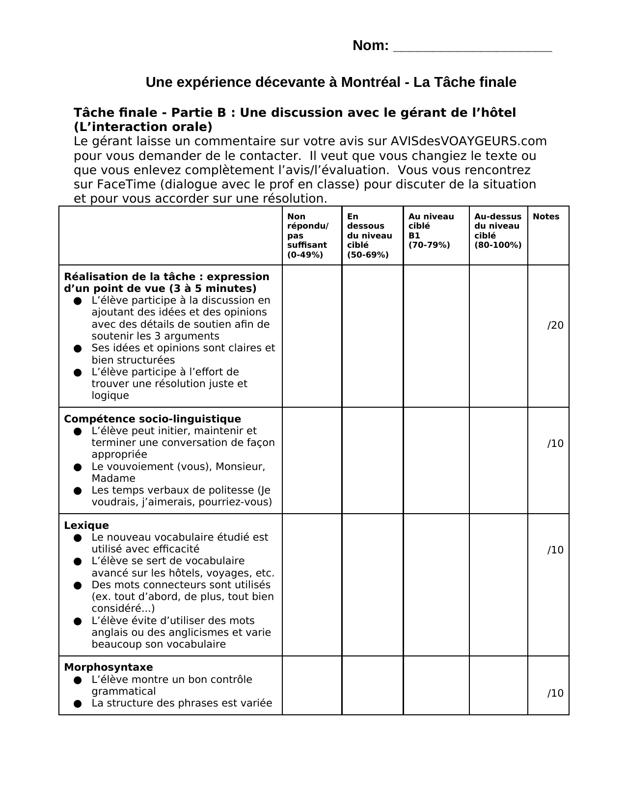 This final task description and rubric is part of a complete action-oriented scenario that is posted on K-12 Studio. Look for the Survol du scénario for an overview and a list of all other available files.